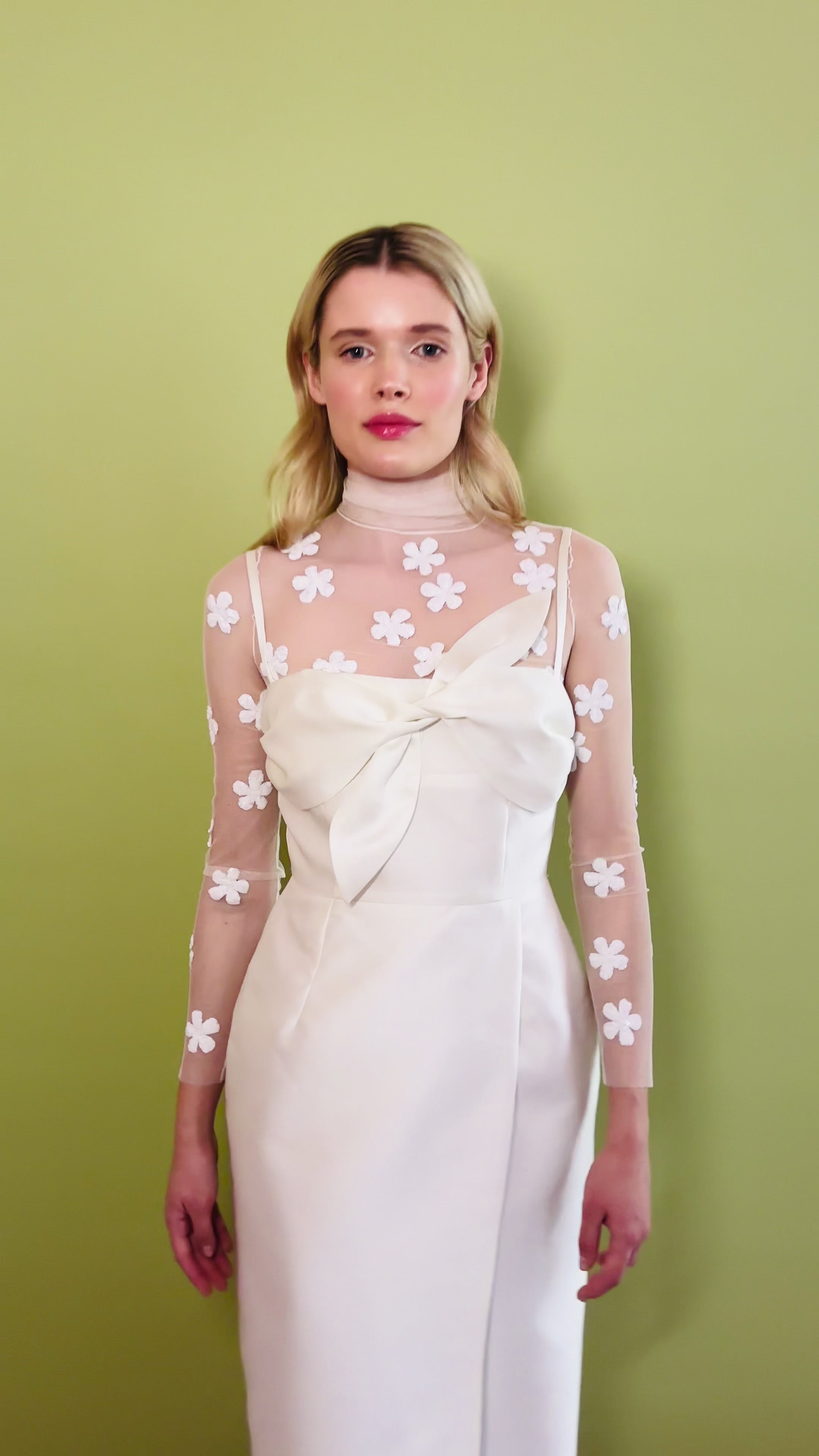 Top de tul elástico con apliques de lentejuelas bordadas y cosidas a mano.